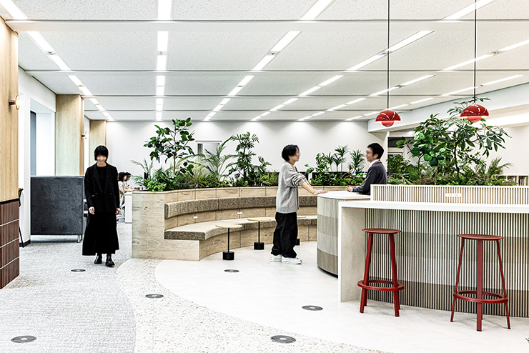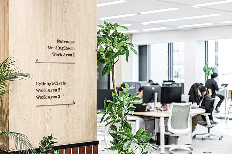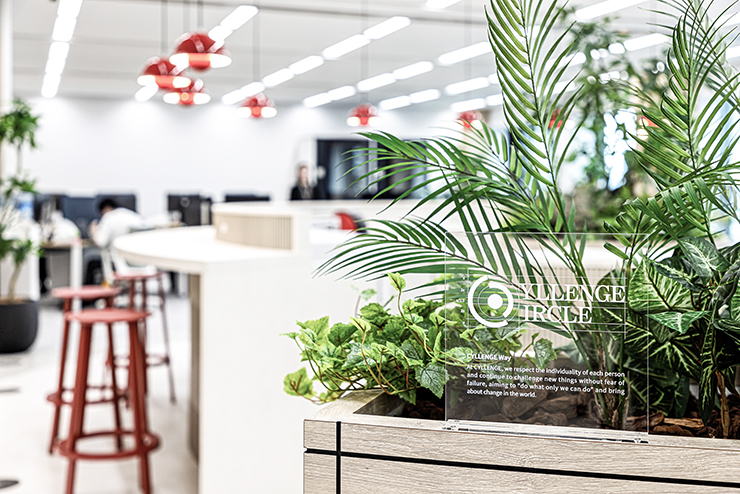 ワークスペース中央に作られたCYLLENGE CIRCLE は、グリーンに囲まれたリラックス空間